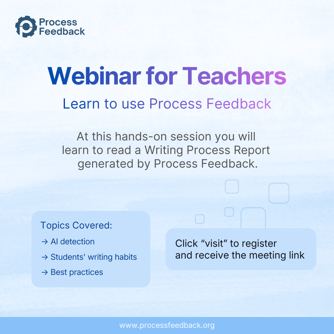 In this hands-on one-hour webinar, you will learn to understand (read) a student’s writing process report generated by Process Feedback. Topics covered include: