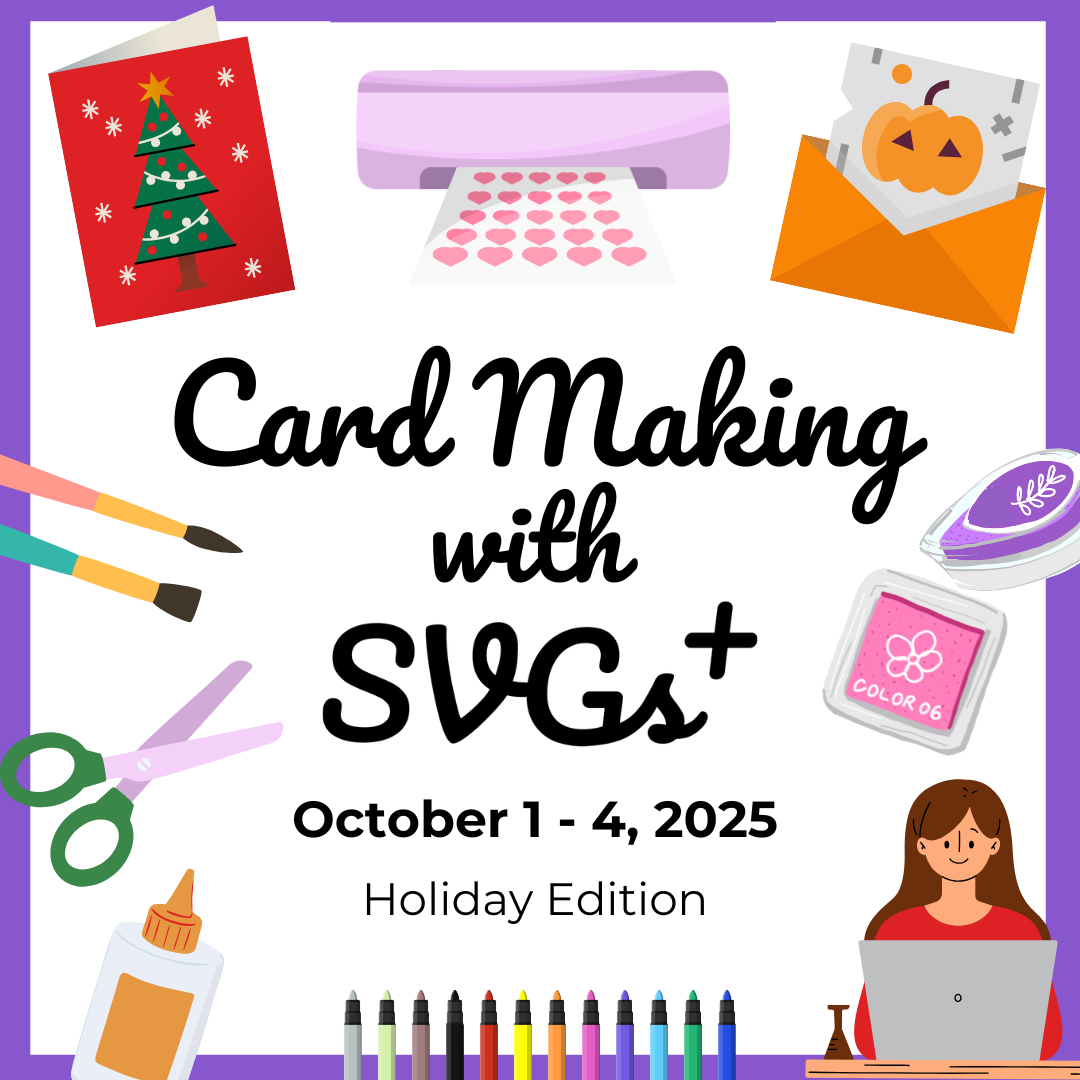 Join the online Card Making with SVGs+ for over 20 SVG-based holiday card projects that include designs and techniques with materials not normally included in Cricut-style cards. Perfect for Cricut, Silhouette, LikLok, Siser and other electronic cutting machine users as well as traditional card makers.