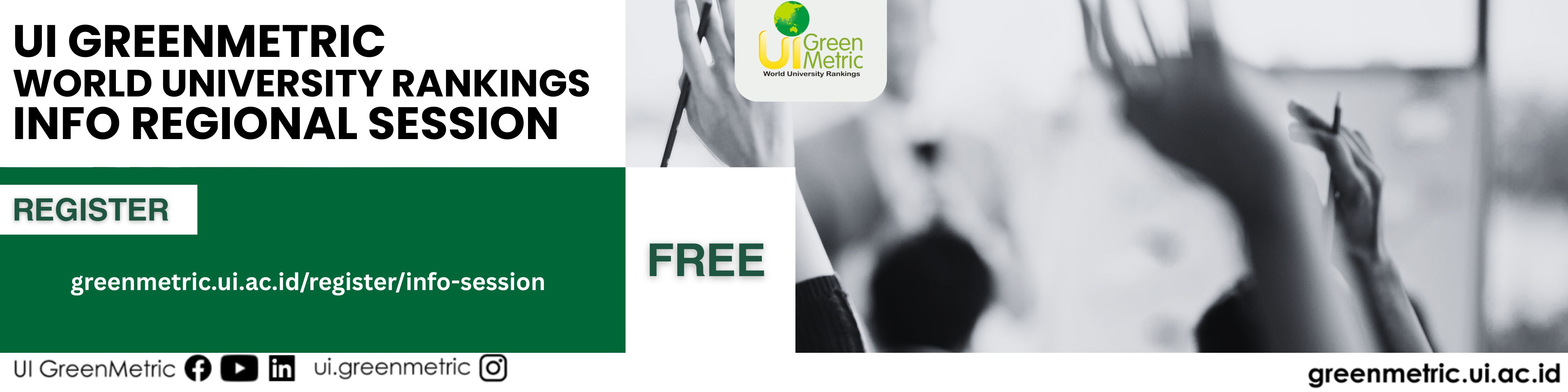 As we prepare for the 2025 cycle, we invite both new and returning participants to join the UI GreenMetric Regional Info Session — a free, interactive platform to deepen your understanding, stay updated, and explore how your university can enhance its sustainability performance.