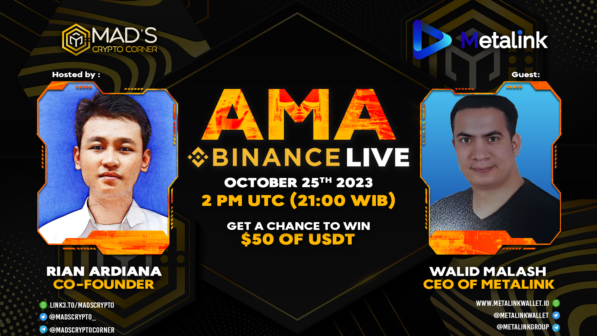 🏠 Venue: https://bit.ly/AMArathonMetalink⏰ Time: Wednesday, October 25th 2023, 2 PM UTC💰 Reward Pool: 50 of $USDT👤 Live with: Mr. Walid Malash | CEO of Metalink