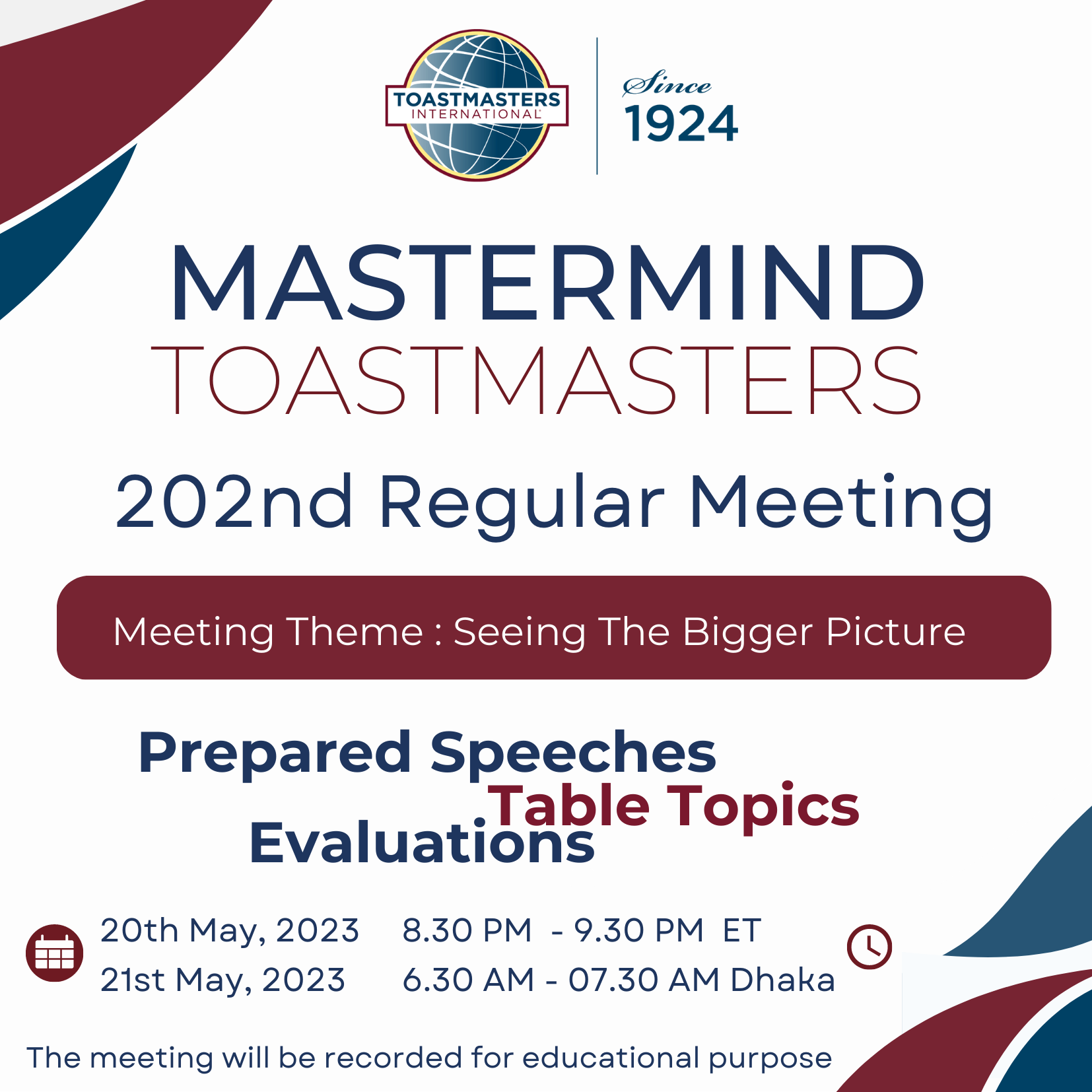 Our mission is to empower the Entrepreneurs, Coaches and Education Leaders with the Toastmaster education program to make a positive contribution to the world.